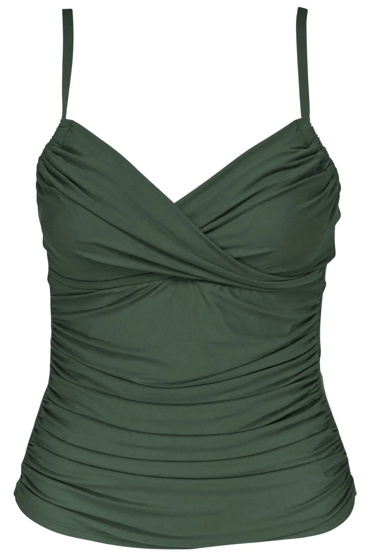 - Shirred Tank with Crossover Neckline: Adjustable, slim-fit body with a stylish accent.