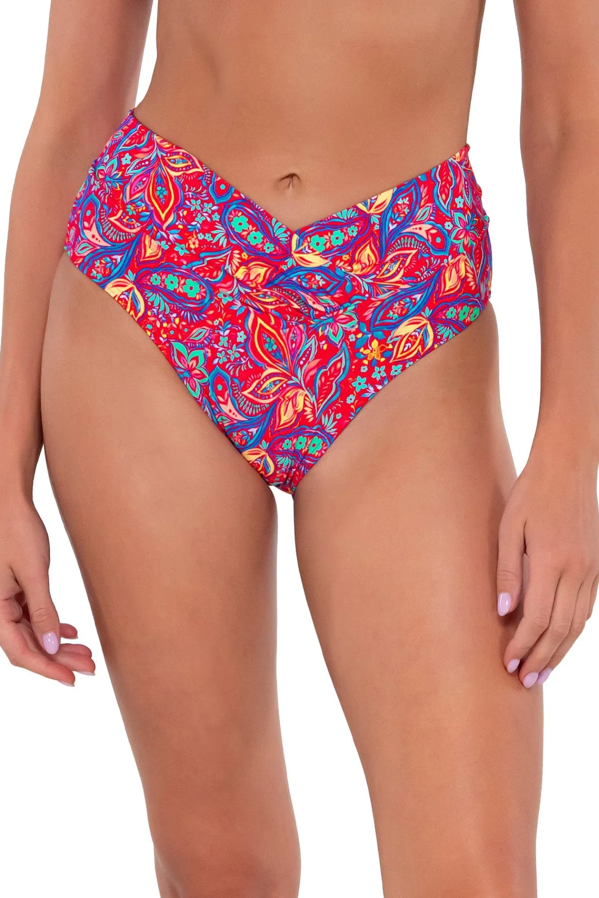 Take your style to the next level with the Summer Lovin’ V-Front! The detailing on this eye-catching bottom offers a great alternative to the basic high waist. A soft foldover band sits comfortably at your high hip and dips to a V at the center.