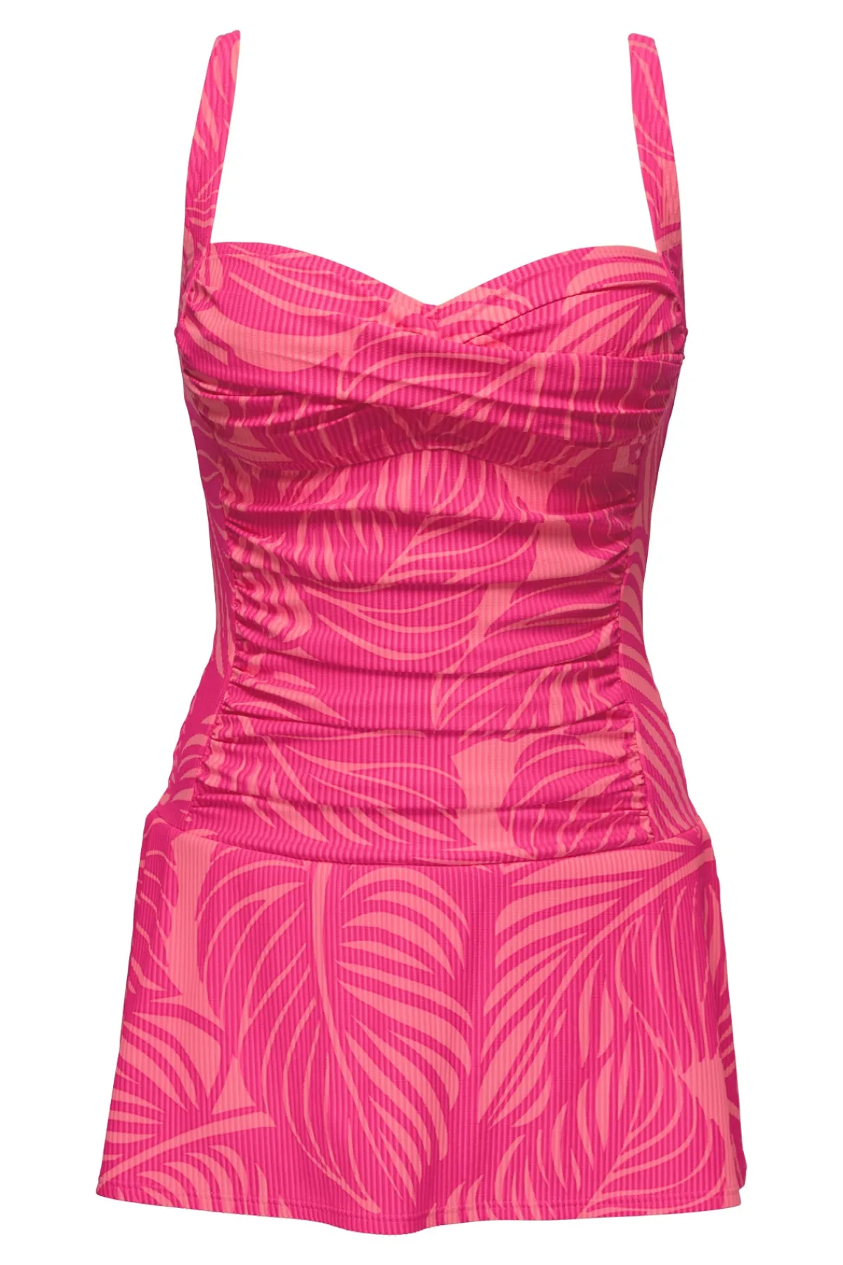 The Sienna Swim Dress is unlike the rest! A feminine sweetheart neckline with a twist front detail and tummy control ruching down the center make this dress an easy choice! It also has smooth side panels, a hidden attached swim bottom, soft cups, and adjustable straps that can be converted to a crossback.