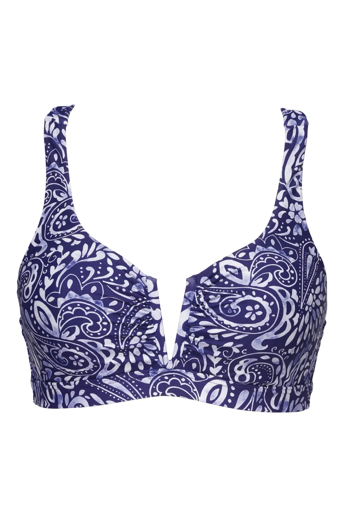Embrace your feminine curves with the Vienna V-wire top. This elegant design is crafted to enhance and flatter your natural bustline. This bikini top has a hidden underwire and soft straps that convert from over the shoulder to crossback or halter for a truly customized fit. Other features include removable cups and a hidden bra closure.