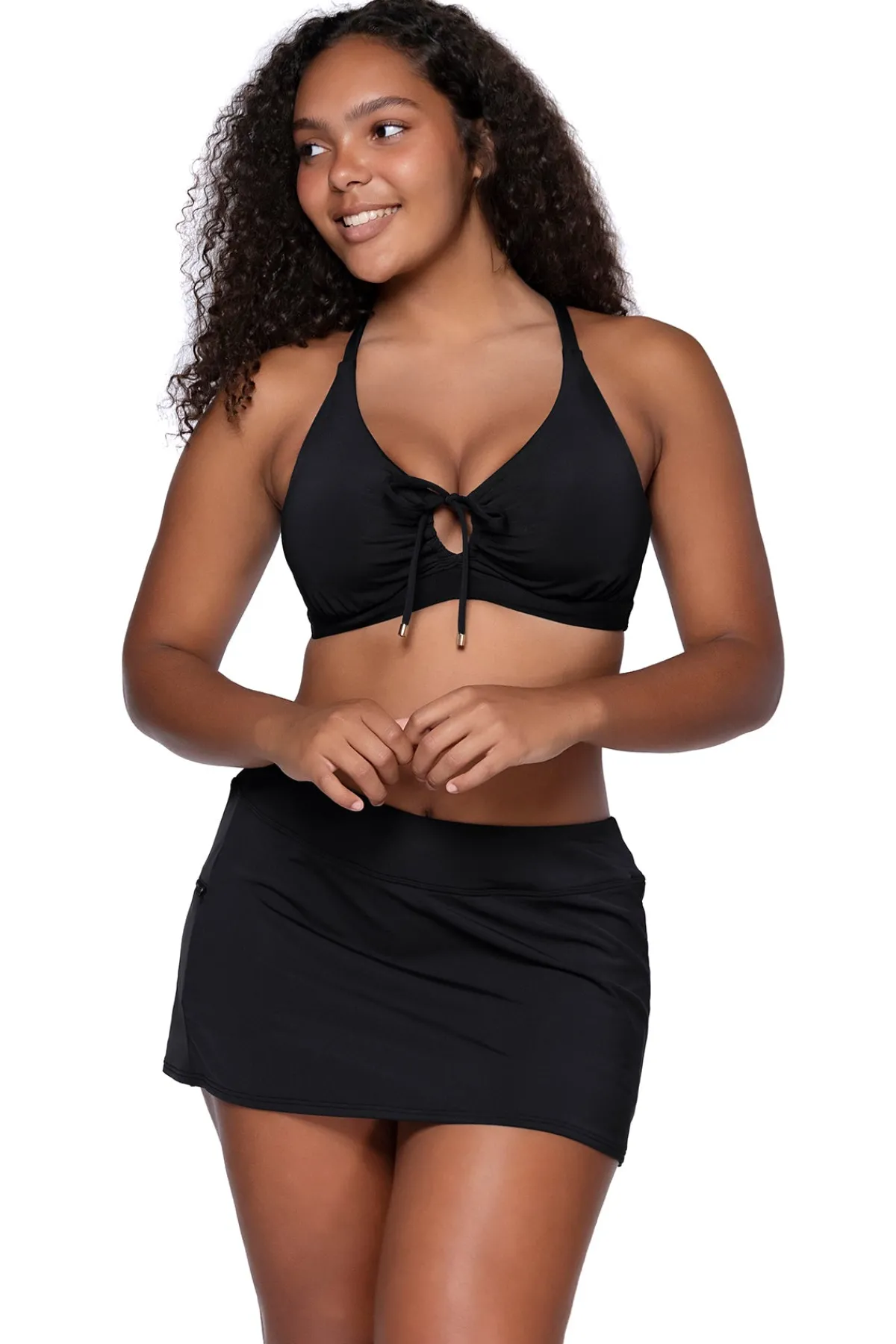 The Kauai Keyhole is chic and supportive. This top is equipped with a keyhole for adjustable coverage. Also featuring an underwire, removable cups, adjustable straps with a J-hook and a hidden bra closure in the back.